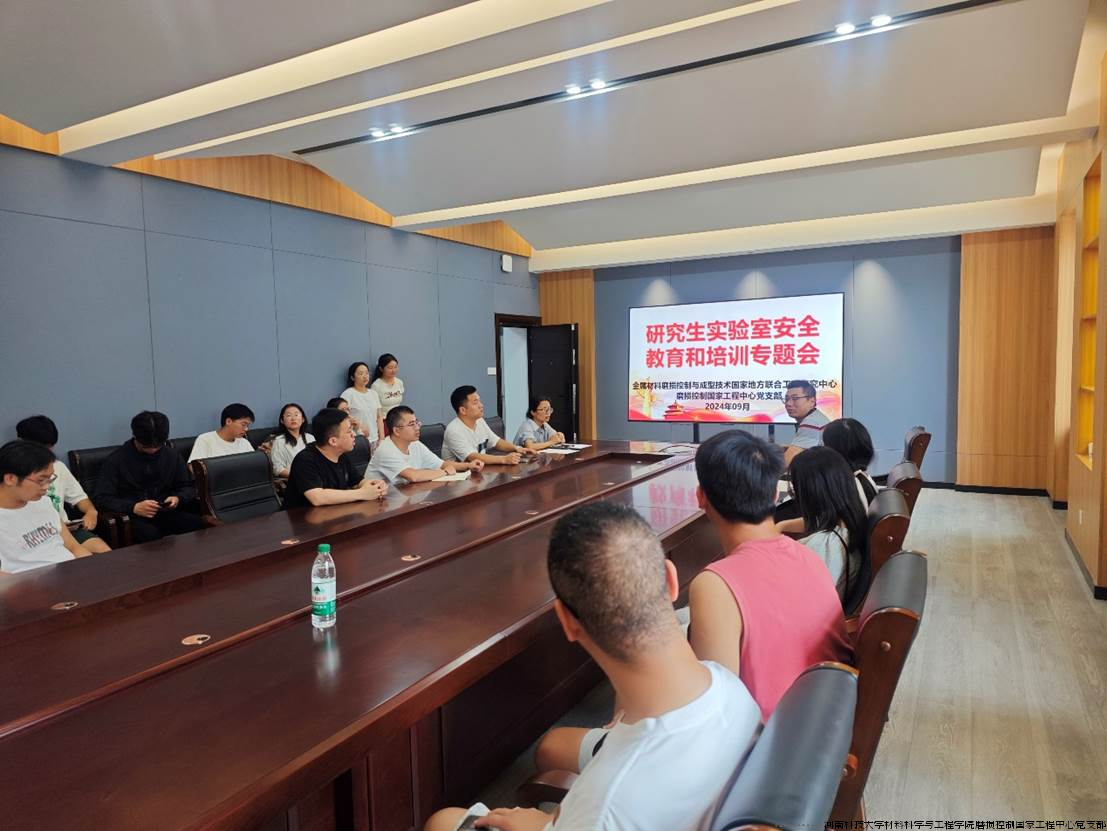 2024 年 9 月 11 日,由磨损控制国家工程中心党支部牵头,举办了一场“研究生实验室安全教育和培训专题会”,金属材料磨损控制与成型技术国家地方联合工程研究中心二三年级全体在读硕士研究生和博士研究生参加,专题会由党支部书记周玉成主讲。