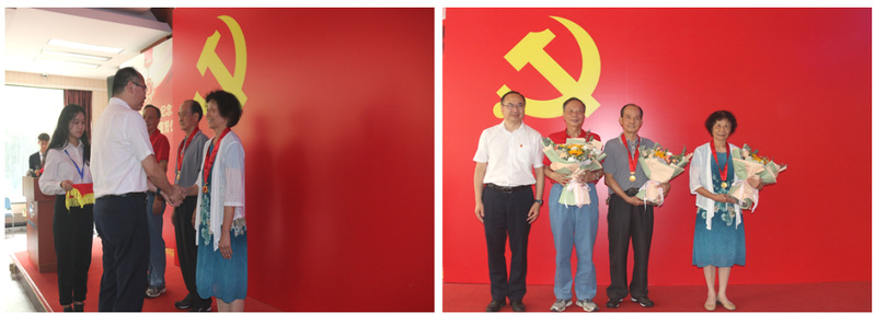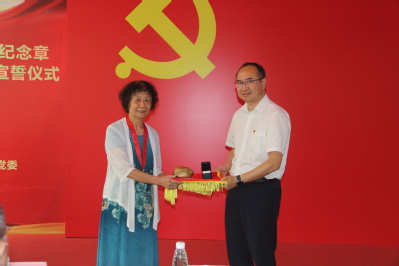 仪式在庄严的国歌声中开幕,首先进行的是“光荣在党50年”纪念章颁发仪式。在热烈的掌声中,3名老党员缓缓地走向台前,晋刚书记郑重地为老党员们颁发“光荣在党50年”纪念章并献上鲜花,向老党员们表示诚挚的祝贺及崇高的敬意。