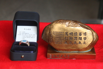 党员吴春苗向学院赠送校训石雕塑、华工戒指