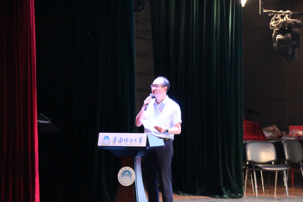 机械与汽车工程学院院长张宪民教授,党委书记晋刚教授,副院长上官文斌教授、李琳教授、李巍华教授、陆龙生教授,党委副书记李嘉老师,汽车工程系党支部书记李礼夫教授,2019级机械类2班班主任张勤老师,2019级机械类7班班主任甄亮老师,2019级机械类14班班主任颜家华老师,以及各年级辅导员出席典礼。