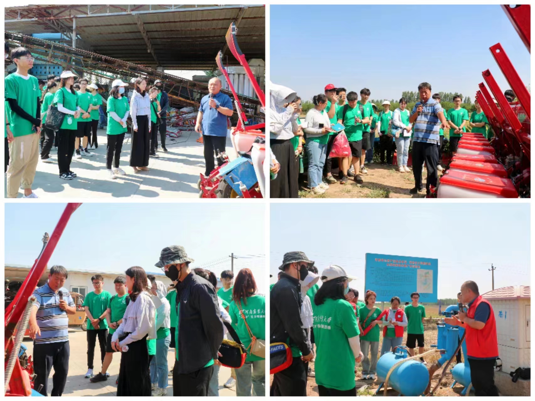 在获嘉县利农种植服务专业合作社,周杰伟结合合作社的相关农业机械设施向大家详细介绍了玉米大豆带状复合种植技术等现代农业技术,实践团成员仔细聆听,认真学习并积极提问。跟随着获嘉县农业农村局土肥站站长王庆安的引导,实践团队来到获嘉县艳阳天农业服务专业合作社,在这里,实践团队深入田间地头,王庆安和徐方子结合田间相关灌溉设施等方面向大家详细具体地科普了智能水肥一体化滴灌等相关知识技术。学生代表结合自己的参观体验及学习体会发表自己的感言。