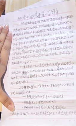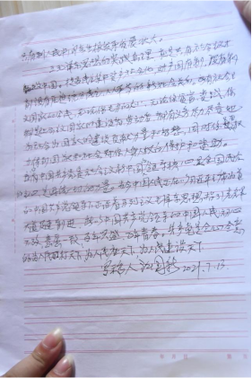 ▲江国新爷爷写下的《献给中国共产党建党一百周年》书信