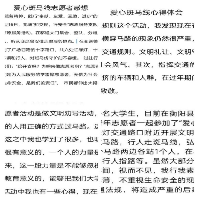 斑马线虽小,但一头连着安全,一头连着文明。作为青年大学生,让我们一起行动起来,从此刻做起,从自身做起,礼貌出行,做到“车让人,人守规”,自觉遵守交通法律法规,共同营造文明、安全的交通环境,让文明出行的风尚蔚然成风。