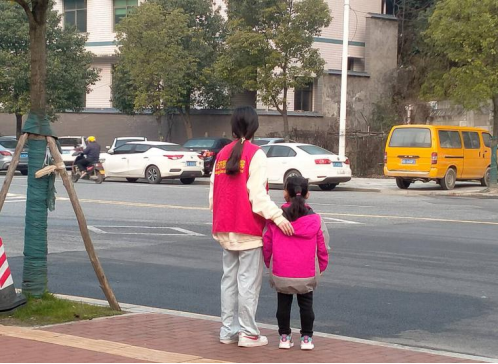 每天早上7时40分,轮值的护学岗志愿者已经穿上红马甲,满怀期待地迎接到校的每一位小朋友。每天下午4点55分后笑容满面地护送每一位小朋友离校。他们配合校园安保人员,守护在校园周边各个重要路口,充当校园安全的“守护者”、学生出行的“航标灯”。