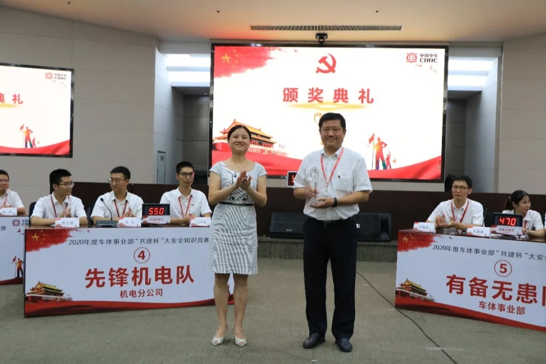 今年3月,湖南铁道职业技术学院马体实训党支部、株机公司车体事业部党委均立项为株洲市基层党建工作示范点。为了推进校企合作、加强党建共建,9月1日,马体实训党支部书记叶小红、支部专职组织员言意文受邀参加了车体事业部2020年“共建杯”大安全知识竞赛。本次比赛首次由基层单位自发组织、以点带面、多部门联动合作,旨在“推进党建与生产经营深度融合”。此次党建共建活动由车体事业部党委主办,联合安全环境与生产保卫部党总支、国际业务支持部党支部、机电分公司党委、总部机关党支部、投资与规划部党支部等多个共同部门共同协办。