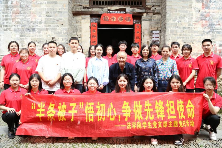 2023年4月15日上午,法学院学生党支部全体党员前往郴州市汝城县文明乡沙洲村开展“‘半条被子’悟初心,争做先锋担使命”主题党日活动。学院党总支副书记罗耒英带队,学生党支部书记黎兆萍、辅导员肖润超、蒋秋琼参加此次活动。