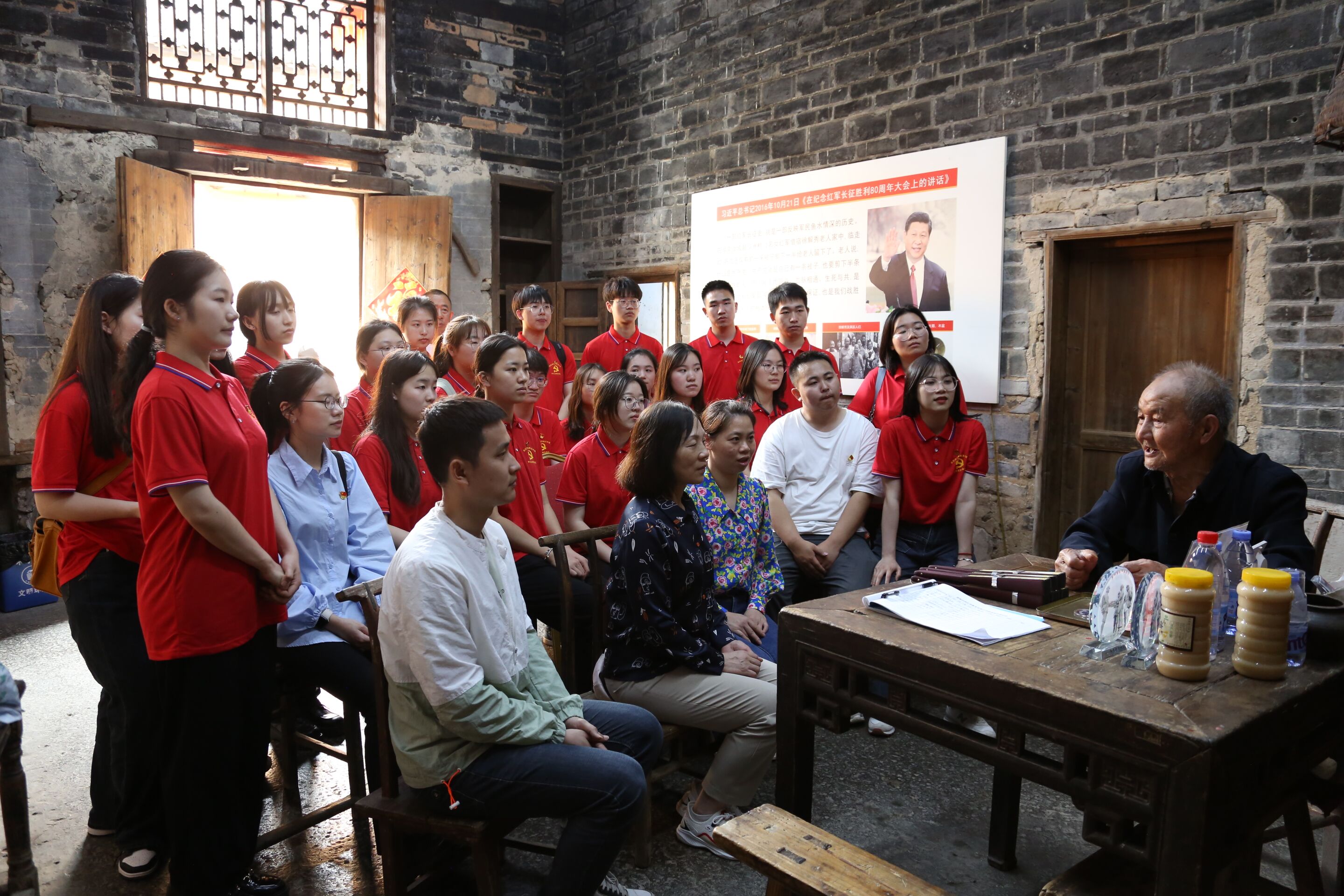 在“半条被子”旧址听朱中雄老先生讲故事