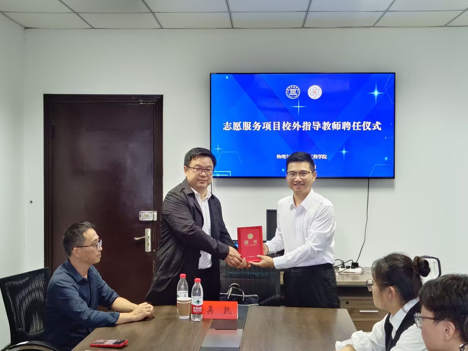 目前,为更好地帮助物理系学生在教育的广阔舞台上熠熠生辉、发光发热,物理系学生党支部聘吴凯老师为支部志愿服务项目校外指导老师。