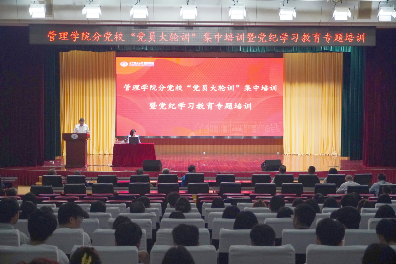 为落实好2024年党员基本培训工作,扎实开展党纪学习教育,教育引导党员学纪、知纪、明纪、守纪,7月1日,华中科技大学管理学院分党校“党员大轮训”集中培训暨党纪学习教育专题培训在学院报告厅举行。院党委书记胡艳华讲授党纪学习教育专题党课,学院全体党员参加培训。院长杨治主持培训。