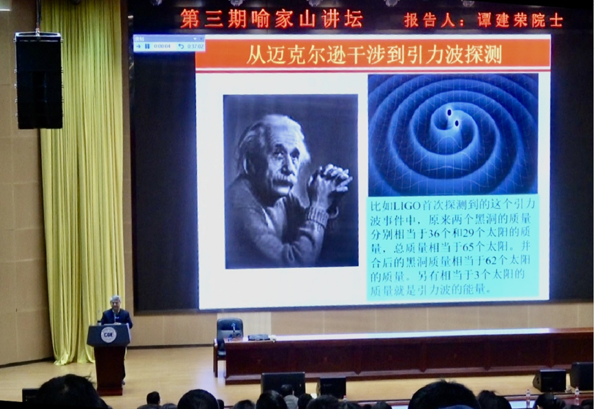 2019年11月30日,第三期喻家山讲坛在精密重力测量科学中心大楼多功能报告厅举行,邀请了我校杰出校友、中国工程院院士、浙江大学教授谭建荣院士作题为《几何检测与性能检测:现代检测技术与装备》的专题学术报告。物理学院书记和院长、引力中心师生以及机械学院师生到场聆听与交流,引力中心主任周泽兵教授主持报告会。