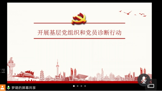 在第一环节中,为贯彻落实《教育部直属高校党组织迎接建党100周年行动方案》精神,按照《华中师范大学基层党组织迎接建党100周年行动方案》(华师党字[2020]40号)要求,我学部响应号召,在本科生党支部书记任梦璐的带领下进行了基层党组织和党员诊断行动。