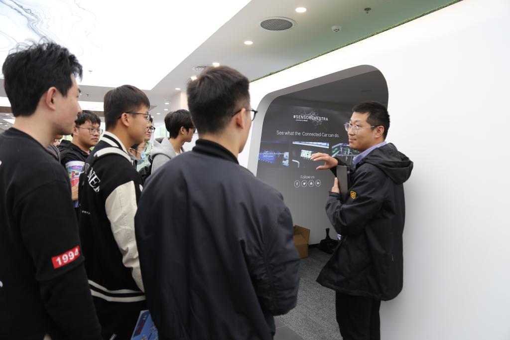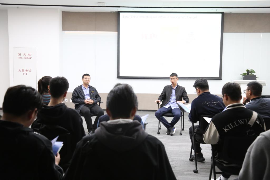 毕业于物联网工程学院的校友代表、博世中国创新与软件开发中心党支部书记陈家乐,校友代表段飞腾分享了自己的求职经验、在博世的工作体验和行业发展趋势,并与学生就自动驾驶、智能座舱等方面进行了技术交流探讨,让学生们更加真实地感受到企业的工作环境和就业前景。学生们也积极与学长交流,提出了自己在专业学习、职业发展等方面的问题,获得了专业的指导和建议。最后,来访学生现场提交了简历并参观了博世中国的企业展厅和办公环境。