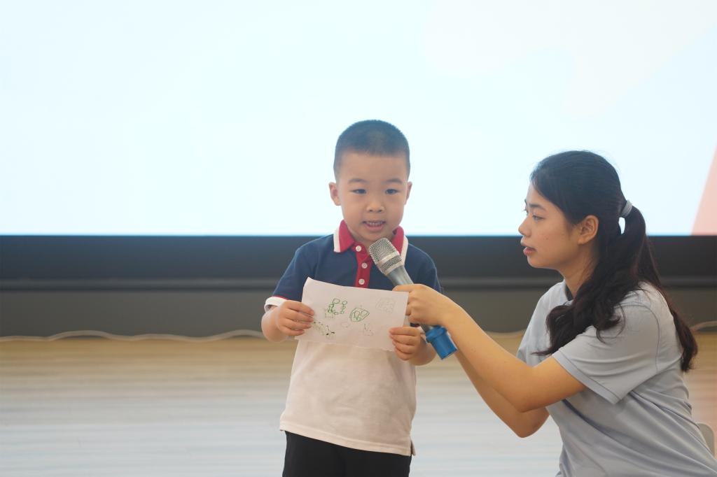 分享环节,志愿者凡荜辉为小朋友展示了学院智能车俱乐部自主研发的作品——“无线智能机械臂小车”。“前进,上抬机械臂,抓取矿泉水瓶,抬起放落台阶。”凡荜辉有条不紊地演示操作。“哇噻!这个小车太神奇了!”全场响了起小朋友们的掌声和惊叹声。“如果你能制造芯片,你会用来干什么呀?”凡荜辉话音刚落,小朋友们回答声就不绝于耳,“我要造火箭飞到很远很远的太空去!”我要做超大屏电视机!”“我要做世界最厉害的芯片,超过其他国家!”一个个关于小小芯片的大大梦想,腾空而起,绚烂多彩。