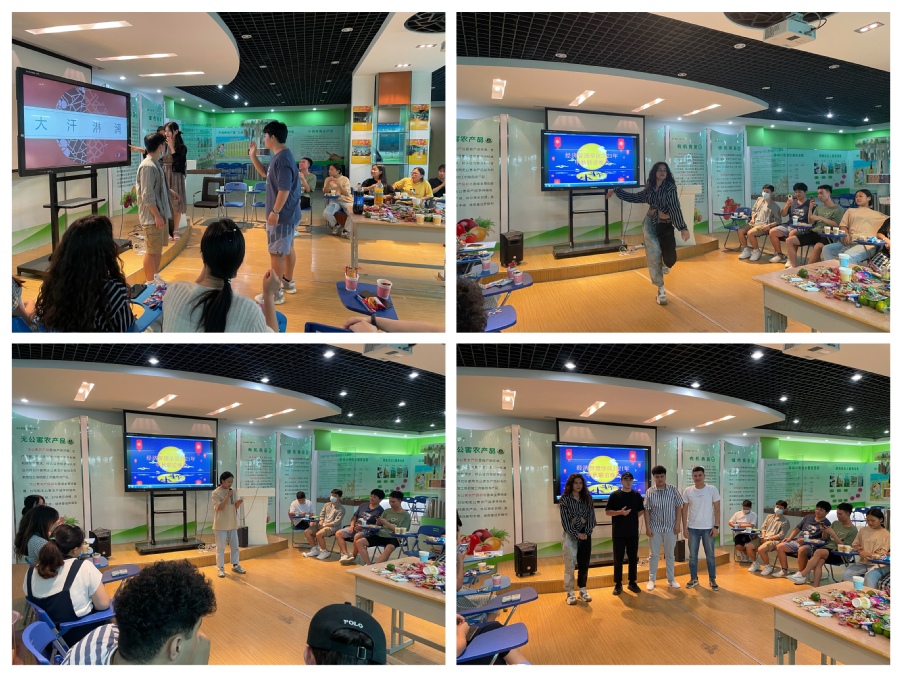 中秋以月之圆兆人之团圆,经管学子欢聚一堂,通过分享各自家乡的中秋习俗来寄托思亲、思家、思团圆的情怀。联谊会开始,19商务英语1班的高飞腾同学为大家详细介绍了中秋节的起源、含义和人们耳熟能详的中秋节传说故事——嫦娥奔月、玉兔捣药、玄宗游月、月饼起义等,并向在场同学普及了中秋节祭月、赏月、吃月饼、饮桂花酒、燃灯的中秋习俗,并为大家讲述了自己家乡江西吉安中秋烧塔纪念爱国英雄文天祥的民俗。在座的老师和同学们也将自己家乡的中秋民俗与大家进行了分享。随后,现场还进行了“你画我猜”的互动游戏。