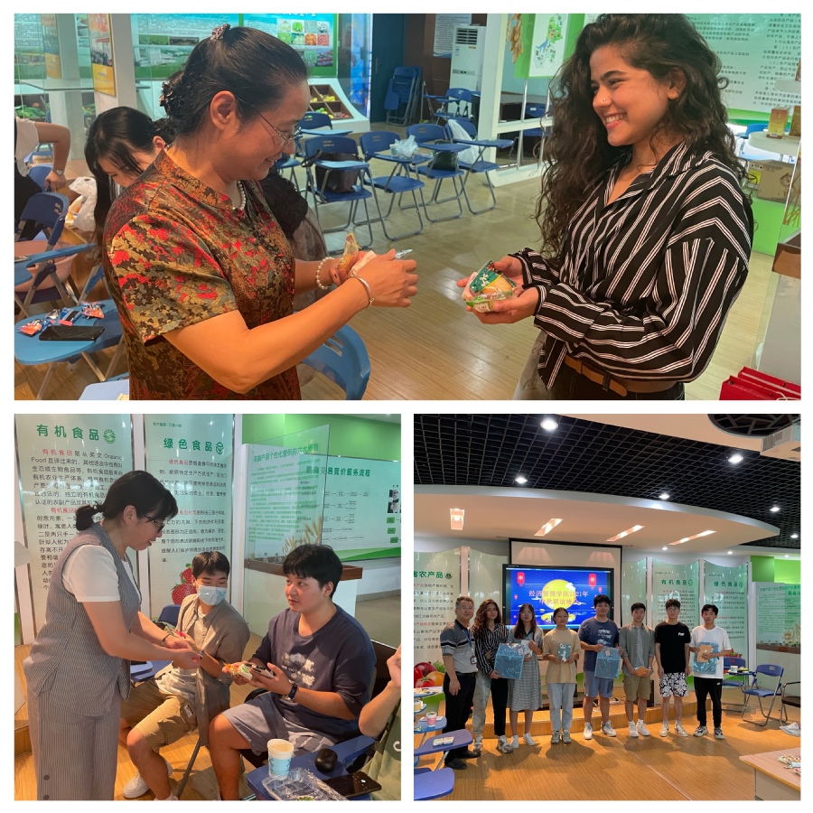 最后,学院党总支书记张晓红、院长卢海涛、党总支副书记黄海梅等为留校学生一一赠送中秋月饼,并送上中秋祝福,为参与游戏活动获胜者颁发纪念品,并与同学们一起合影留念。