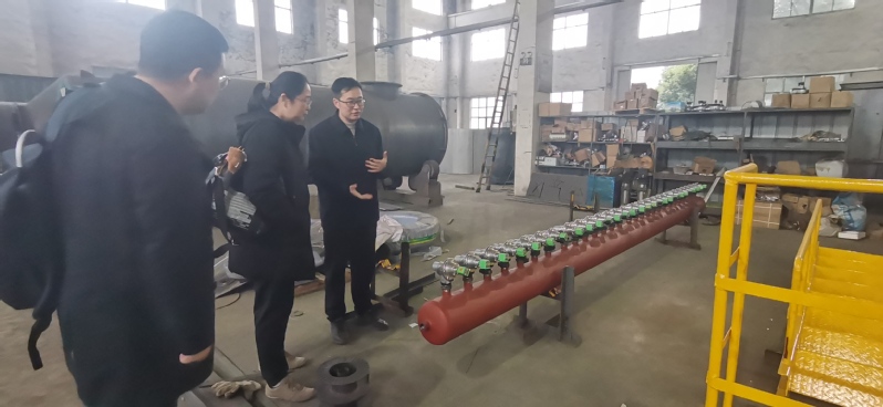 史博热情接待学院一行,介绍了公司的基本情况:从事环境污染防治设备、除尘脱硫脱硝设备、空气净化设备和噪声治理设备的技术研发、技术咨询,参观了生产车间,展示了公司拳头产品锅炉多管除尘器和布袋除尘脱硫装置。