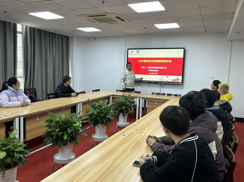 为进一步推动2025届毕业生就业工作,近期,环境生态学院第一党支部在应天校区211开展校友企业宣讲活动,江苏辰际环境科技有限公司总经理高金山作专场宣讲。学院党总支副书记杨丹、学工办副主任陈涛涛、支部部分党员和有该公司实习意向的10余名2025届毕业生参加,就业干事谢伟芳老师主持。