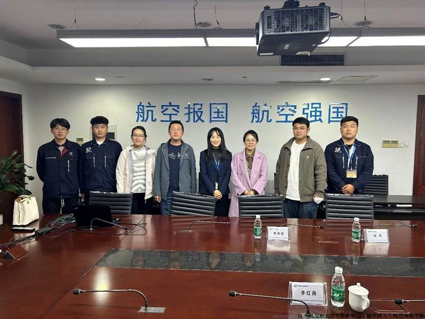 在参观结束后的座谈中,李笑瑜副院长对学院基本情况、无人机专业建设和人才培养成效等方面做了详细介绍,中航金城无人系统有限公司副总经理张慧也对公司基本情况、人才需求、校企共享共建等方面做了详细说明。双方就大力发展低空经济的趋势下,校企双方的共同合作点做了充分交流,从人才输出、专业课程共建、低空场景的具体应用、职业技能等级证书及无人机装调工程师培养目标等多方面展开了深入讨论,并初步达成校企合作的意向。会后,无人机党支部持续发挥党建引领育人作用,对就职于该公司的多名往届毕业生进行关心关切,了解学生的工作内容和生活质量,也为持续进行人才输出打下了很好的基础。