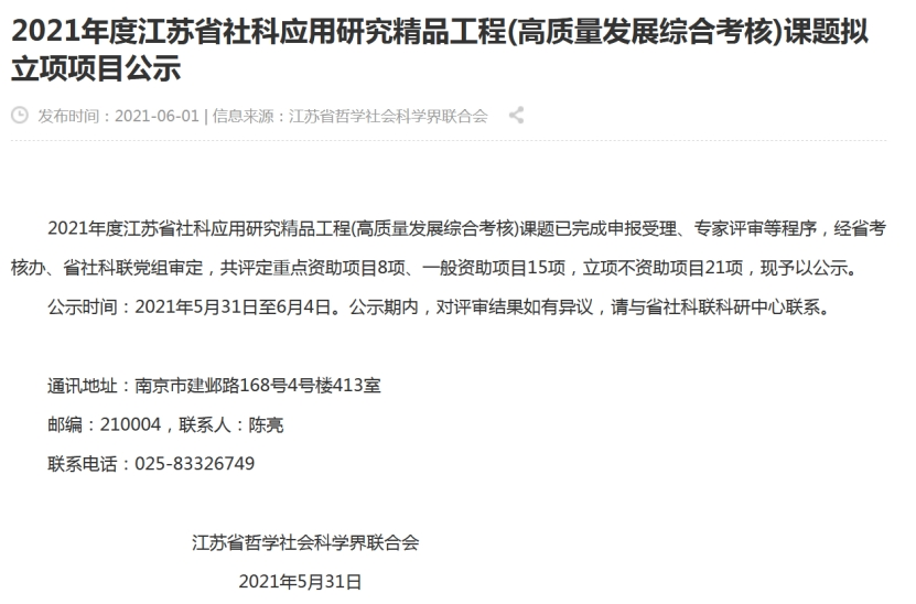 近期, 2021年度江苏省社科应用研究精品工程(高质量发展综合考核)课题拟立项项目公示。学院治安管理系教师第二党支部宣传委员卢义桦博士申报的《高校基层党建考核指标精准化设置与实现路径研究》(21SKC-10)被立项。这是支部近年来在党建理论研究方面的新突破。