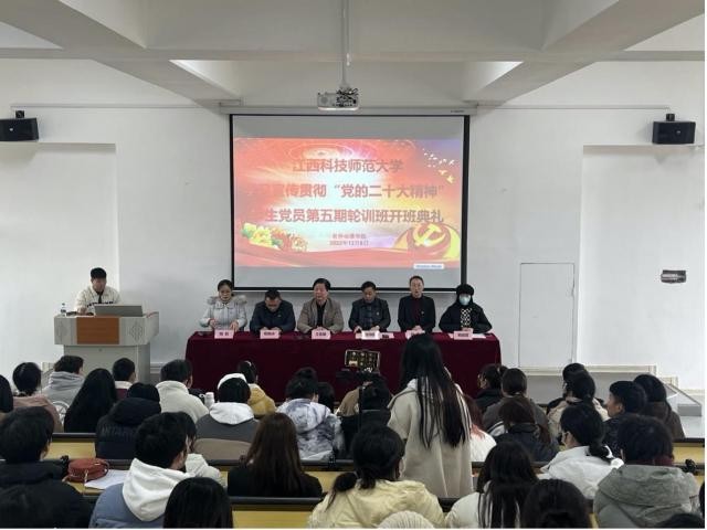 12月6日下午,由江西科技师范大学党委组织部、党校主办,软件动漫学院党委承办的学习宣传贯彻“党的二十大精神”学生党员第五期轮训班开班典礼以线上线下相结合的形式举行。学院党委书记涂晓群、学院党委副书记王建敏院长、学院团委书记赵雪以及各党支部书记出席,学院全体学生党员参加。