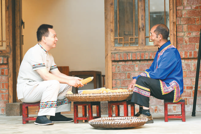 钱建超(左)在润溪乡樱桃村“巴渝民宿”了解乡村旅游发展情况。