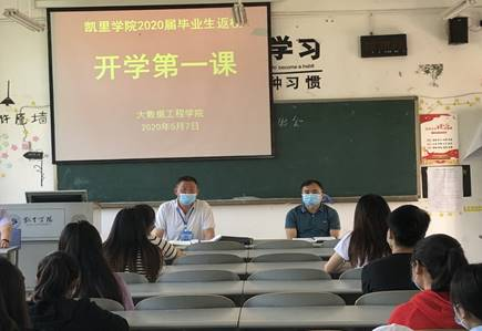 全体参会人员首先观看了《凯里学院战“疫”思政公开课》视频。之后,杨建忠副书记对各位同学在疫情防控取得积极成效后返校复学表示热烈欢迎,并带领大家一起学习凯里学院返校复学一系列相关规定,特别是口罩佩戴、体温检测、消毒、洗手、就餐、宿舍等要严格遵照相关管理制度要求。他指出,返校的同学要自觉遵守学校返校复学的相关规定,采取积极的疫情防控措施,切实保证生命财产安全。同时,为了使各位同学更好更快就业,他要求大家在自觉做好疫情防控的同时,主动出击,积极抓住机遇,使自己尽快找到较好的工作岗位,并激励我院学生积极参军入伍,响应国家号召到队伍建功立业。安全第一,生命至上,为使同学们进一步牢固树立安全意识,提高安全防范能力,杨建忠副书记还向各位同学传达省安委办和州安委会《关于进一步做好近期安全生产风险防控工作的函》等文件精神,要求大家高度重视,主动避免在疫情防控期间复工复学发生安全事故,以强烈的忧患意识坚决遏制重特大事故发生。