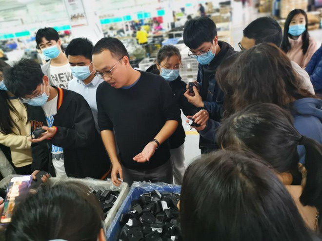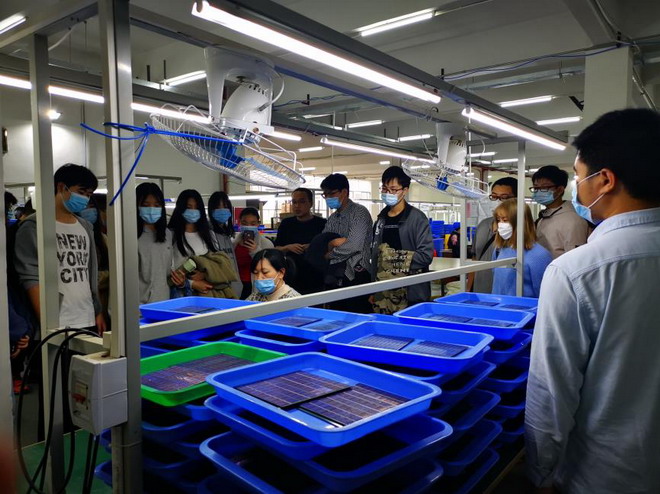 随后,梁主管带领学生们来到光伏照明产品的生产车间,为学生们讲解公司生产的各种产品,详细介绍了产品的设计和制造流程、组成部分、产品参数和生产工艺要求以及产品销路等各个方面,让学生们对光伏产品以及相关的市场情况有了更深刻的认识。