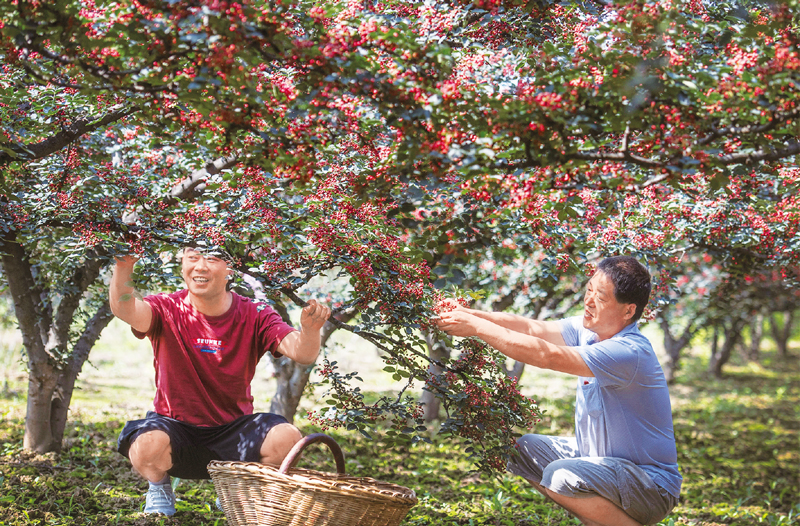 产业是发展的根基,产业兴旺,乡亲们收入才能稳定增长。陕西省渭南市华州区扩大“华州花椒”种植规模,花椒产业已成为当地村民致富奔小康的“摇钱树”。图为2020年7月30日,华州区大明镇下李村村民在花椒地里采摘花椒。 新华社记者 陶明/摄