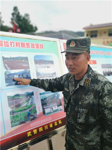 大凉山深处梭梭拉打村是彝族聚居区,也是国家“三区三州”深度贫困地区的典型代表。2017年,武警四川总队启动扶贫脱贫“三年规划”,从小在这片土地上“吃百家饭”长大的彝族武警警官布哈,为了回馈家乡的父老乡亲,便主动请缨来到定点帮扶的四川省昭觉县梭梭拉打村。