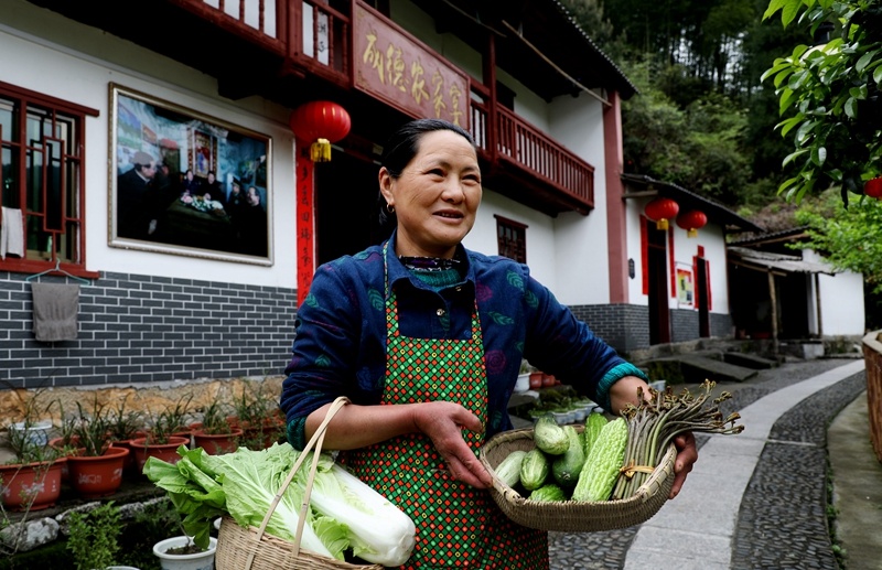 彭夏英瞅准红色旅游带来的商机,拿出全部积蓄开办了神山村第一家农家乐,办起神山特产小卖部,出售土特产和手工制品,还搞起了民宿。“在旅游旺季,我家最多一次接待9桌客人。如今,我们家年纯收入有12万元左右。这在以前是想都不敢想的生活。”彭夏英说道。