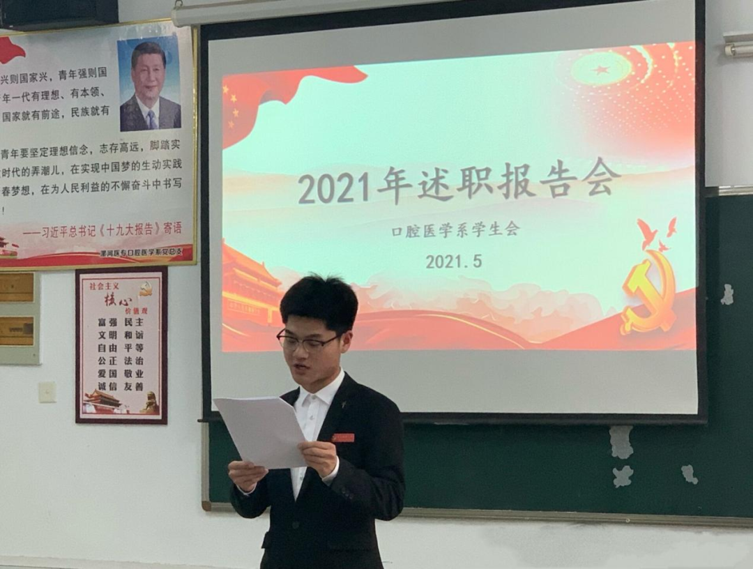 为了更好地落实全心全意为同学服务的宗旨,总结梳理 一年来的工作成果和工作经验,5月28日下午,口腔医学系学生会在二号楼会议室召开2021年学生会述职报告会。会议由口腔医学系团总支书记冻冰主持,口腔医学系党总支委员参加。