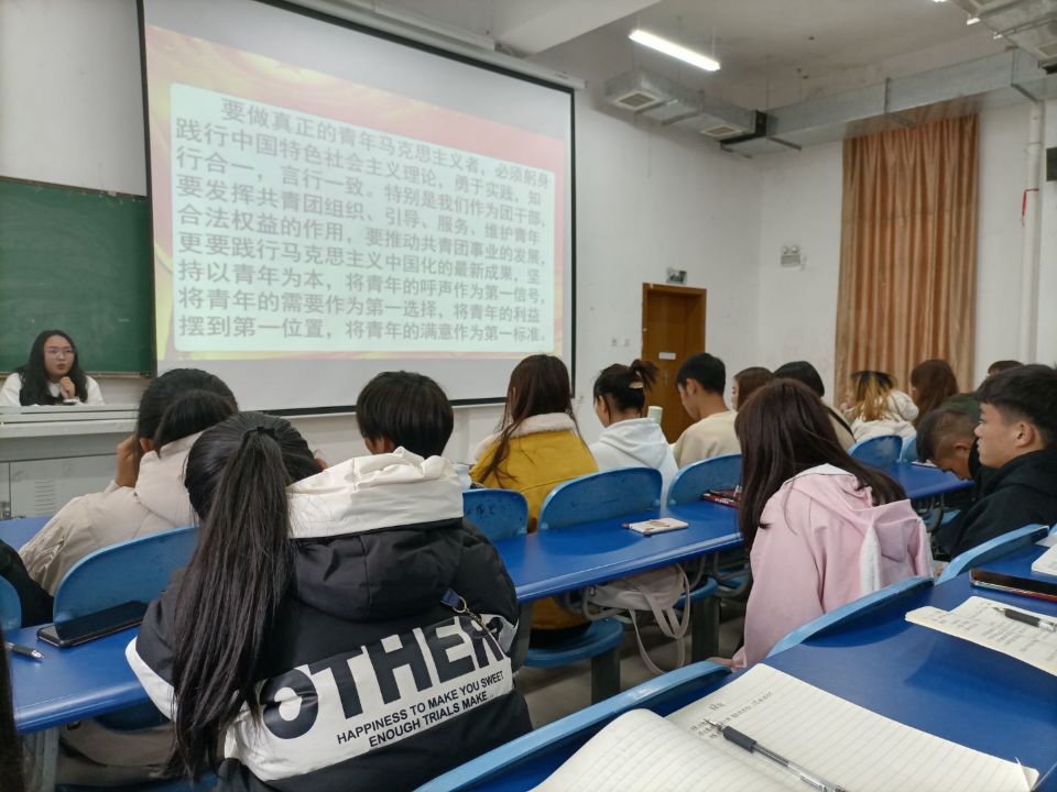 为了提高学生干部的综合素质和管理能力,培养学生干部的责任意识,大局意识和服务意识,提高学生干部自身理论水平,增强学生干部的组织协调能力,加强学生干部队伍的凝聚力,战斗力建设培养坚定的青年马克思主义者,以促进学生工作的更好开展。学院团总支于2020年11月18日于331教室组织开展“青年马克思主义者培养工程”培训第四期。