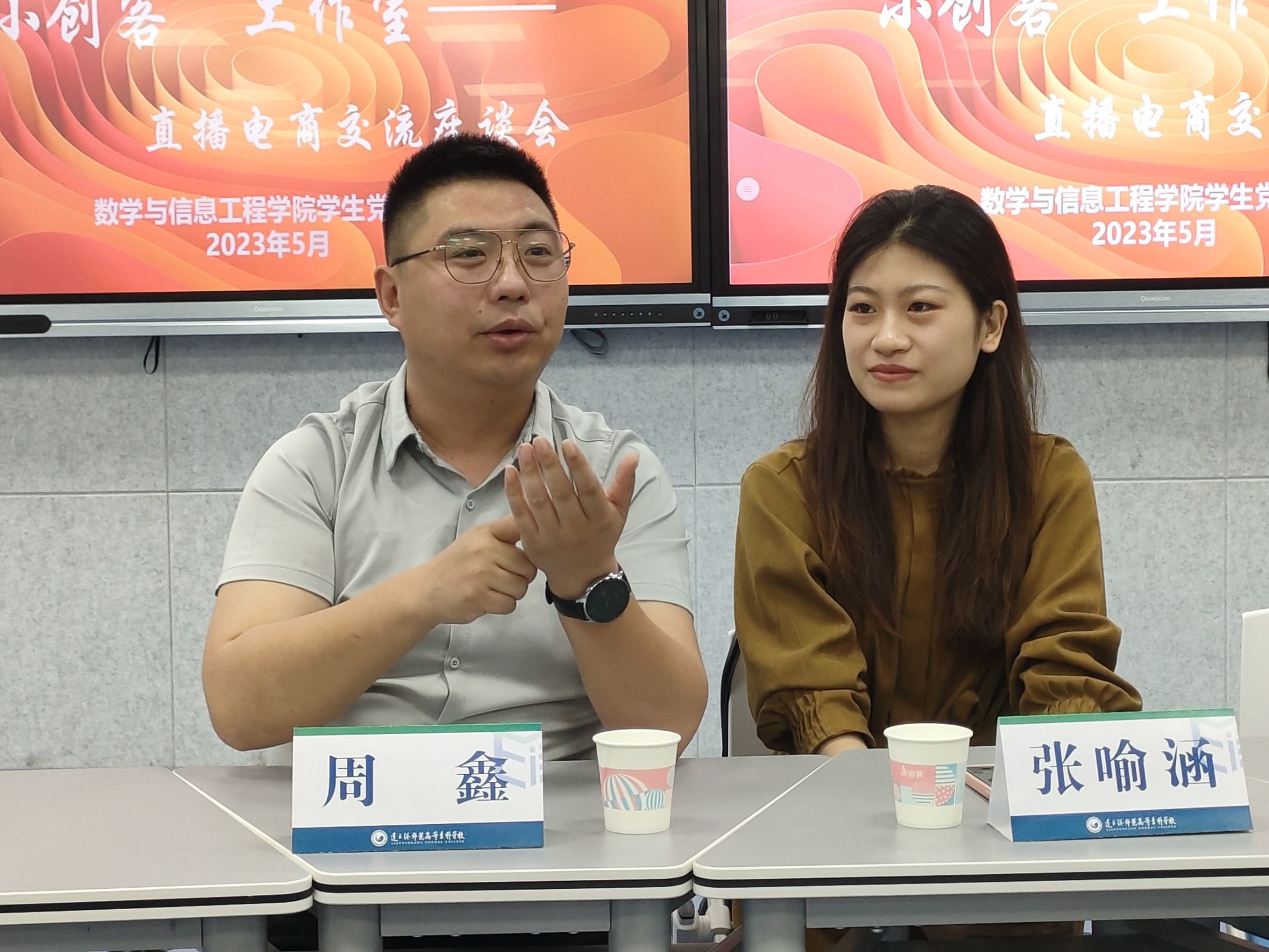 为了解在校生创业的思想动态和状况,促进创业项目的成长与交流。近日,数学与信息工程学院学生党支部在智慧教室A106开展“小创客”直播电商交流座谈会。