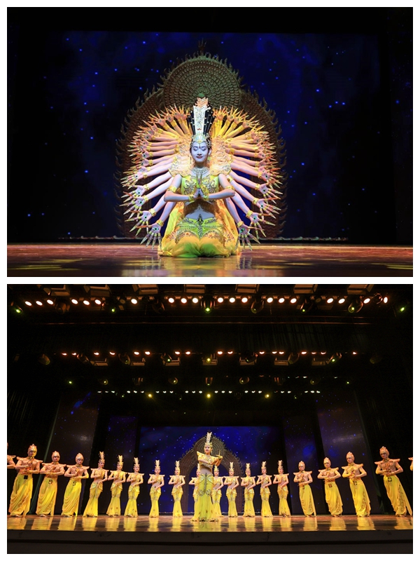 伴随所有观众的掌声,曾在2005年春节联欢晚会上感动了无数中国人的节目《千手观音》压轴出场。在优美的乐曲声中,21位聋哑演员以出神入化的肢体语言和大爱无形的感召力量,再次呈现极其震撼的视觉盛宴。