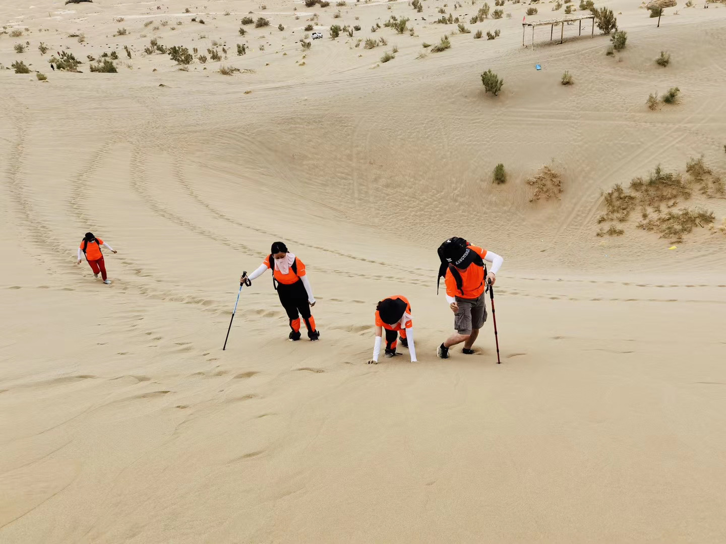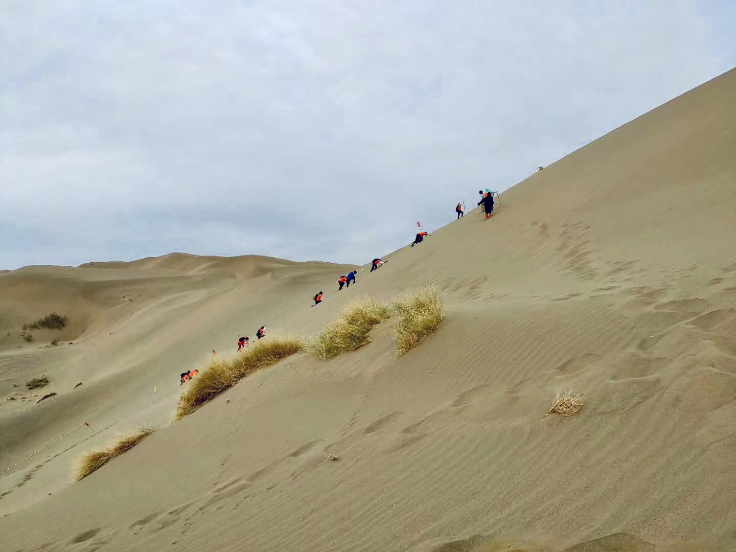 第二天的赛程全部为沙漠沙丘,同学们经过第一天的小组磨合和锻炼,自我感觉越来越进入状态:呼吸、步幅、登山杖已经完美的磨合。帮助和鼓励在比赛中随处可见,在行进时的一句句加油鼓励;艰难爬坡时一双有力大手的助推;迷路时的一个指引…穿越沙漠的路途中,克服高温,挑战自我,永不放弃,绝不言败!当同学们冲向终点线的那一刹那,充满骄傲自豪!