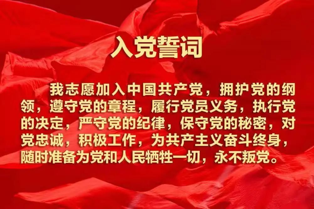 张秋实老师和李垠锋分别带领新党员和老党员举起右手,握拳过肩,宣读入党誓词。这短短 80 个字,镌刻着中国共产党人,百年来的初心与使命,也砥砺、验证着每个共产党员的坚强意志和崇高品格。我们党所创造的辉煌历史,正是在无数共产党人的声声誓言和在一步一个脚印的践行中实现的。