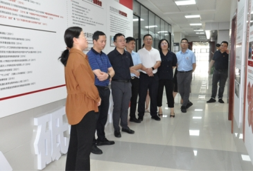 随后,调研组一行来到三楼党建文化宣传阵地,支部副书记付园分三个板块详细介绍了全国样板党支部的建设情况。高研院党支部始终坚持以“党建引领,科技强国”为宏观指引,立志创建一支思想够硬、技术够强、标杆够优的党建业务融合“双强”型样板党支部。支部构建的“3+3+3”的党建工作模式,将党建融入日常科研、融入人才培养、融入社会服务,满足了新时代高校党建“双创”工作的重点任务要求。支部对标“七个有力”,还实施了“七大提升行动”,包括铸魂行动、铆钉行动、遵规行动、强基行动、引领行动、聚力行动和落地行动,多样化的组织形式、多维度的宣传方式,既发挥了“头雁”引领作用,又实现了师生凝聚有力,最后还能促进产业融合、服务地方。接着,付园老师结合学院定位提出了新的建设思路:政治做引领、教学作基石、研究求突破、产业出成果。支部始终坚持党的引领,牢记国家战略使命,在党建工作中形成了有显著特色的工作机制,并取得了良好成果,服务了超过50家单位,与6家企业建立了党建联建或学习基地。
