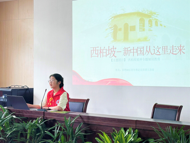宣讲团成员王诗雨以“西柏坡:新中国从这里走来”为题,从西柏坡精神的历史背景、核心内涵、新时代价值三个方面展开,多角度、多维度、全方位地讲述了西柏坡精神作为中国共产党的精神谱系之一,对新时代青年的重要意义,倡议广大青年学生要勇于变革、勇于创新,保持永不懈怠的精神状态和一往无前的奋斗姿态,创造属于青年一代的辉煌。