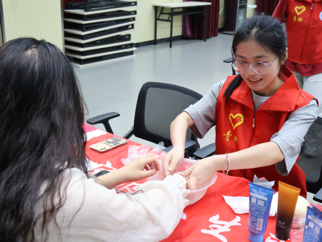 缓解学生期末复习的学习压力,做到真正的“减压加分”,宣讲活动结束后,宣讲成员与各社团志愿者一起面向全校师生开展专业志愿服务活动。检验社的血糖血型检测让同学们感受到医学科技的魅力美容社手部护理让青年学生感受美享受美热爱美;口腔协会宣讲的口腔护理知识也让同学们受益匪浅检验社社长范梦莹表示,西柏坡精神蕴含深厚智慧和力量激励着自己善于学习、主动转变相信在西柏坡精神的指引下,社团活动和志愿服务将做得更加出色,为社会贡献更多的力量。