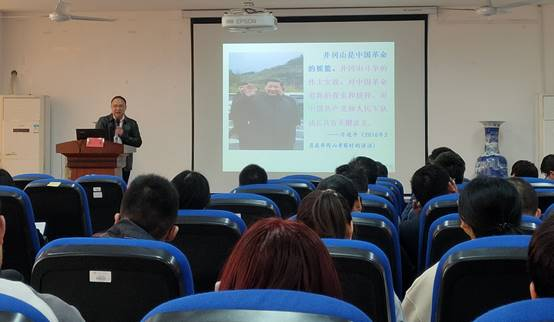 之后,肖小明教授为全院师生党员作了《井冈山斗争与井冈山精神》的专题报告。肖教授首先从习近平总书记在党史学习教育动员会上的讲话谈起,并引用龚自珍的名言“欲知大道,必先为史”阐明了学习党史的重要性和必要性。接着,肖教授运用大量鲜活事例,从井冈山革命根据地的基本概况、井冈山革命根据地的历史划分、井冈山革命根据地的曲折发展、井冈山革命根据地的后期斗争等方面回顾了井冈山革命的峥嵘岁月,生动诠释了“坚定执着追理想、实事求是闯新路、艰苦奋斗攻难关、依靠群众求胜利”的伟大井冈山精神。学院师生党员的心灵一次次被震撼,情绪一次次被感染,精神一次次被洗礼,内心一次次被折服。通过肖小明教授的精彩讲座,学院师生党员全面了解了井冈山革命斗争的艰难历程及其重要历史地位;重温峥嵘历史,老师们感慨万千,深受震撼,对井冈山精神、对中国革命、对毛泽东、朱德等老一辈无产阶级革命家有了深刻的认识和体会。