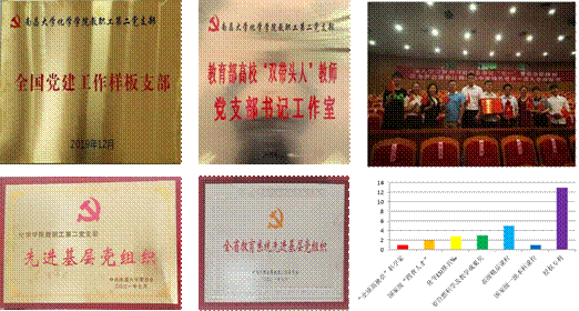 支部坚持以“党建双创”为引领,建立健全以“党建工作样板支部”为标杆的党建工作新机制,积极推进党建创优促发展,取得显著成效。样板支部创建以来,党员骨干牵头承担各类科研项目34项,资助金额1615万,发表学术论文120余篇,其中SCINCE、JACS、AFM等国际顶级期刊20余篇;授权专利13项;获省级以上自然科学和教学成果奖3项;入选国家级青年人才项目资助和全球“高被引科学家”名单各1人;建设有国家一流本科课程1门和省级精品课程5门;面向国家重大需求,支部党员牵头创建了南昌大学稀土研究院,开展了稀土试验班专业型人才培养。在支部骨干成员积极努力下,成功申报获批化学工程与技术学科一级博士点和江西省环境与能源催化重点实验室。