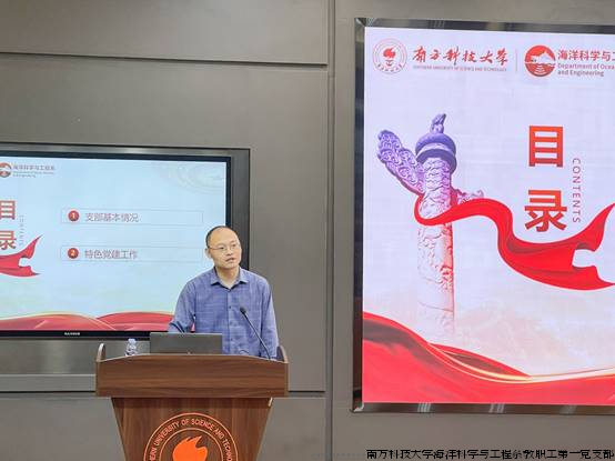 南科大海洋系教职工第一支部组织委员侯圣伟在党务工作培训会上做全国样板党支部培育创建经验分享