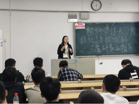 核化183班武皓辰同学介绍了中核四0四公司的基本情况及招聘要求。院团委副书记黄子芩同学为同学们讲解了目前核化工与核燃料工程专业的就业现状和就业方向。