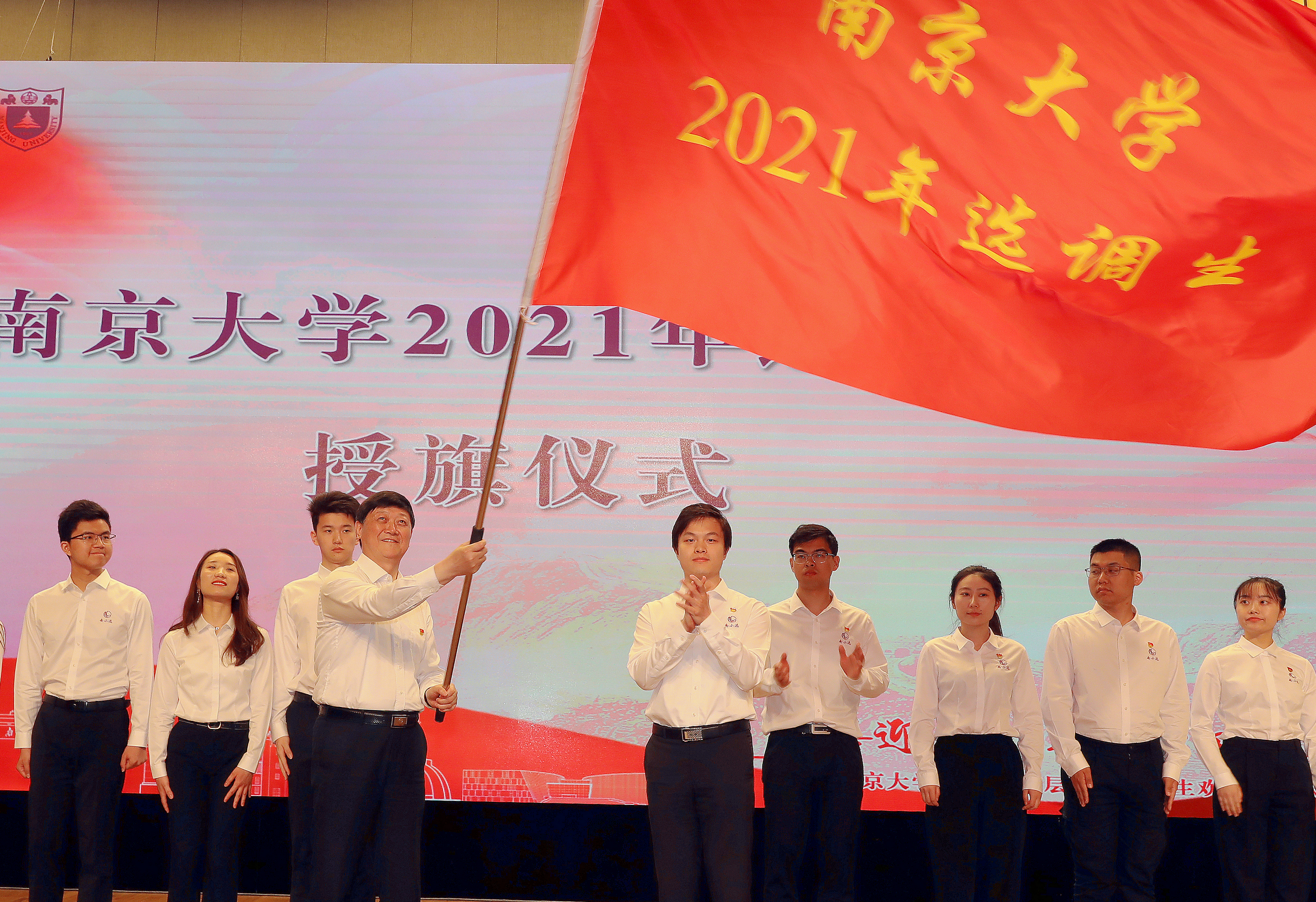 第二篇章"新起点,欢送一程"围绕"表彰欢送"主题,以选调生在校成长回顾视频开篇。龚跃宣读了《南京大学关于颁发2021年度第一批"青苗奖"的决定》,表彰了97位选择去基层建功以及到国防军工等国家重点领域立业的优秀毕业生。法学院2021届硕士毕业生李云轩作为选调生代表发言,他回顾了在南京大学的成长经历,表达了对学校的感恩眷恋和建功报国的决心。胡金波为各省区市选调毕业生代表授旗。南京大学学生基层工作发展研究会会长、贵州省选调生陈丽,江苏名校优生泰州市选调生朱劲带领2021年选调生集体宣誓。