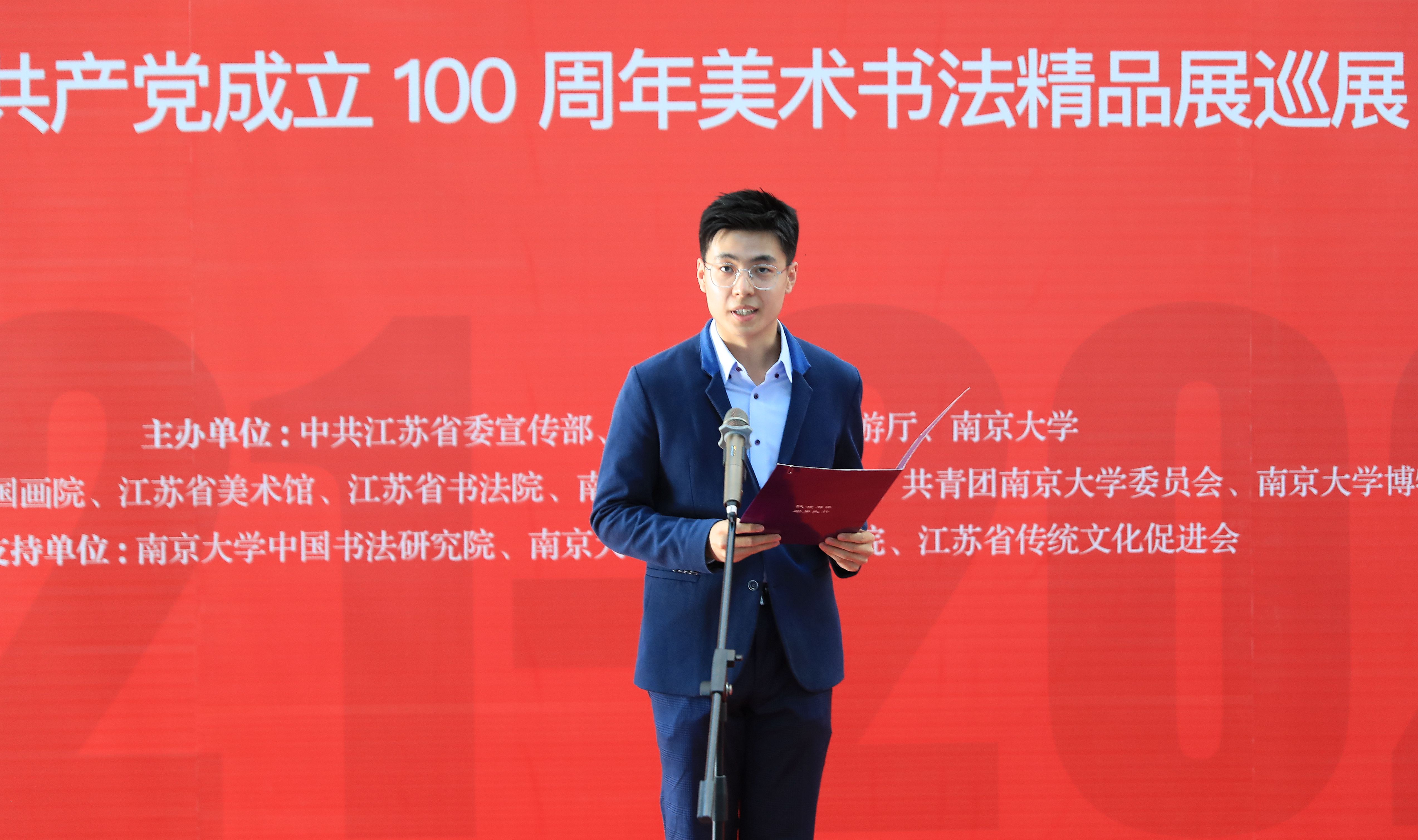 学生党员代表、哲学系博士研究生孔伟宇在发言中表示,党史学习是流淌在每一位南大学子身上的红色血脉,笔墨丹青是党史学习的生动载体,当代青年是创造历史新的主体,自己一定会从这些优秀的书画作品中汲取精神力量,用实际行动把青春奋斗融入党和人民的事业。