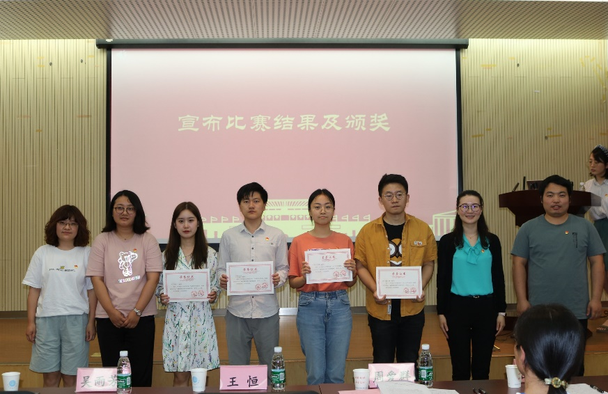 两个多小时竞赛内容丰富、引人入胜,现场氛围浓烈、催人奋进。各组展示结束后,系退休教师代表、关工委副主任伍玲玲,兼职组织员吴雨芳等老师对主讲人的表现作出精要点评,充分肯定了南哲学子走深走实的党史学习风采和严谨诚笃的求知学风,并鼓励学生们继续主动、扎实、深入地进行党史学习。各出席嘉宾为获奖同学颁发荣誉证书。