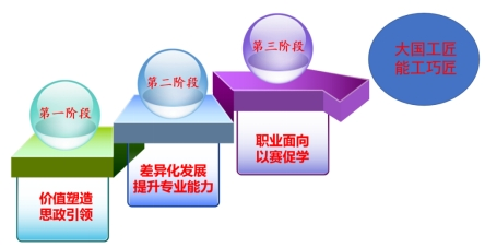 学生刚入校,党员教师根据自己负责的“育人网格”做好学生的红色导师,通过价值塑造,思政引领,帮助学生适应新环境,树立正确的三观。学生先后会进入到高一层次的网格中进行学习。教师根据自身专长,强化学生专业能力,为后面的高阶网格目标打下基础。最后阶段学生利用专长,积极参加各级各类竞赛,检验自身所学。学生在竞赛中提升自己,为未来的大国工匠、能工巧匠打下良好的思想和技术基础。