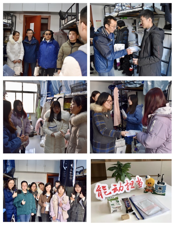 2020年考研进入了最后冲刺阶段,为鼓舞考研学子士气,能源与动力学院开展“筑梦研途”之“研途送温暖”活动。12月16日中午,能源与动力学院党委副书记王霄,副院长张天宏、徐惊雷,班主任代表杨荣菲、王晓伟、潘慕绚、王春燕以及辅导员张鹤千、李绍嘉共同到宿舍看望考研学子,为各位学子带去一份温暖、增添一份动力。
