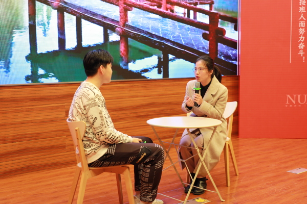 谈心谈话环节以情景再现的方式开展,由参与搜集、整理工作案例的“百名学生校长领航团”同学代表广大同学向辅导员提问。主要考察辅导员对学生特征、学生成长成才规律的了解把握程度,对学生的教育引导能力、解决理论困惑和实际问题的能力。陈华华细致耐心地倾听学生的困惑,循循善诱地对学生进行引导,与学生心贴心交流。