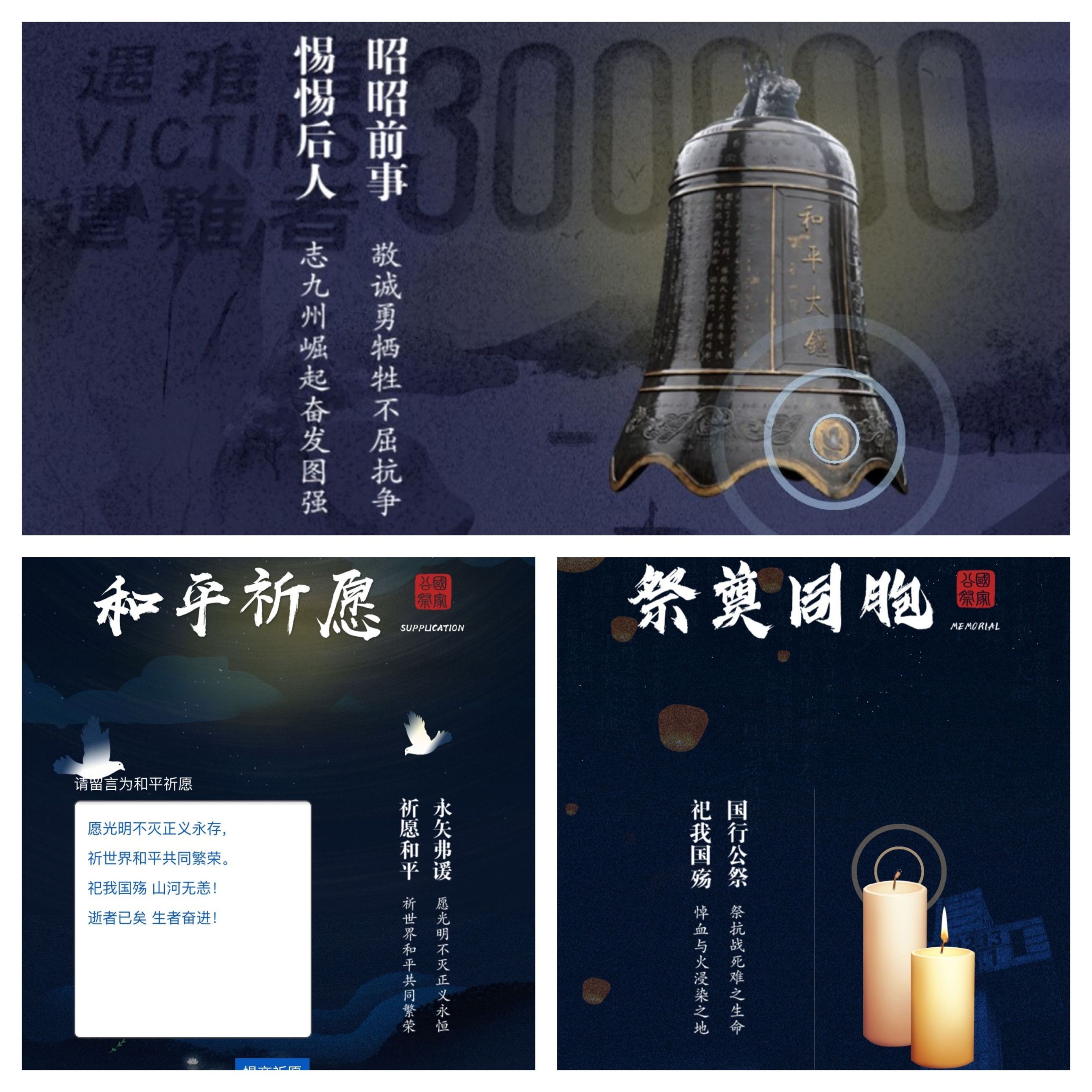 在团日活动的最后,同学们参与了国家公祭日“网上答题烛光祭”活动,并进行了国家公祭网的和平祈愿活动,为南京大屠杀30万遇难同胞点亮了祭奠的烛火。